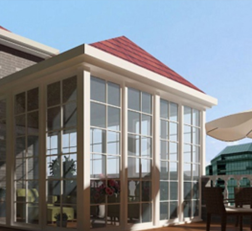 What are the types of glass used in high-end villa sunrooms and system doors and windows