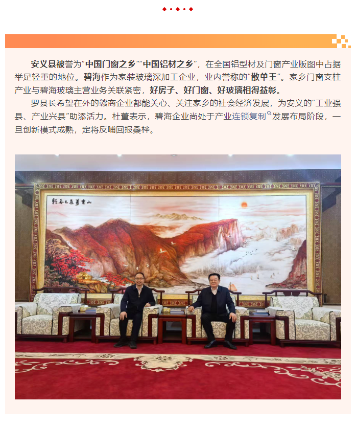 家鄉(xiāng)領(lǐng)導(dǎo)江西安義羅縣長(zhǎng)一行蒞臨碧海企業(yè)調(diào)研指導(dǎo)!